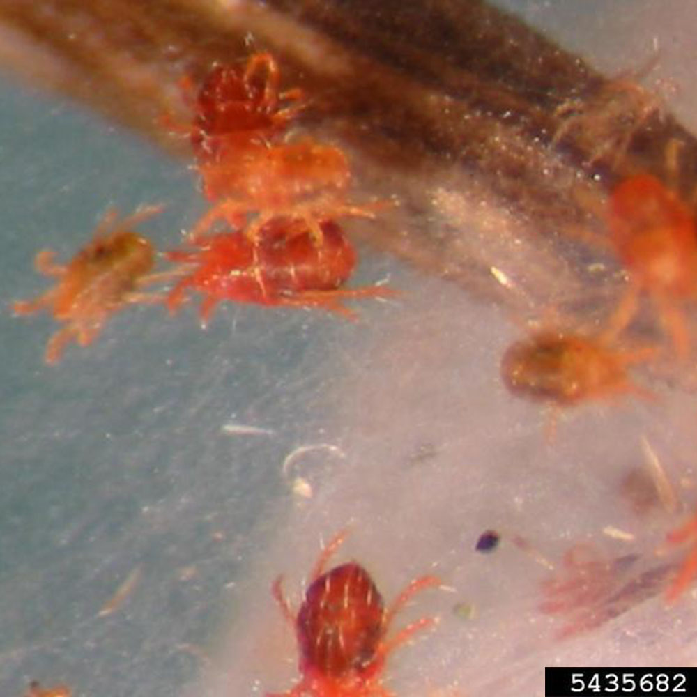 Mites are very small pests more closely related to spiders and ticks than to insects. Rather than six legs, like insects have, mature mites have eight legs. Several types of these pests cause damage to lawn grasses and other plants. Web-spinning mites, often referred to as spider mites, are the chief offenders.