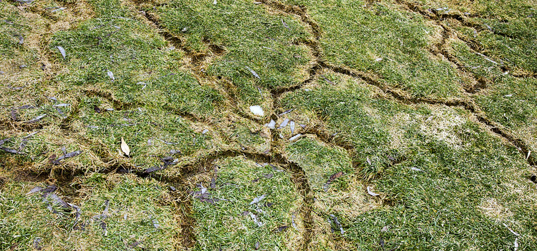 - Large areas of brown, dying grass in late summer