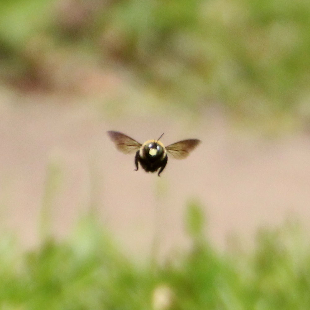Male carpenter bees are very aggressive and often dive-bomb people and pets that come near their homes. Despite their aggression, these male bees can't sting, so don't let them deter your treatment. Female carpenter bees can sting, but they rarely do. They try to avoid human contact instead.