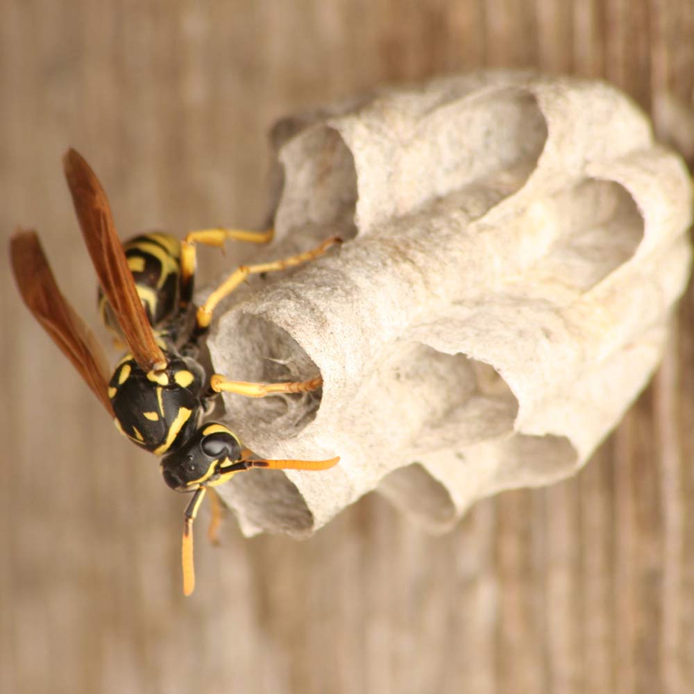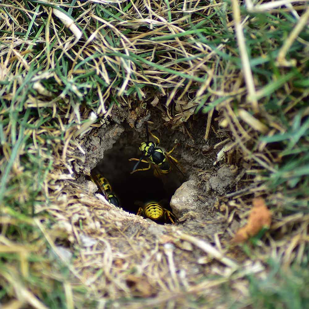 Depending on the species, yellow jackets build their papery nests in many different places. Sometimes, the first sign of their presence is a small papery comb built surprisingly close to doorways and outdoor entertainment areas. Other times, you may discover a small hole in your lawn that leads to an underground nest.