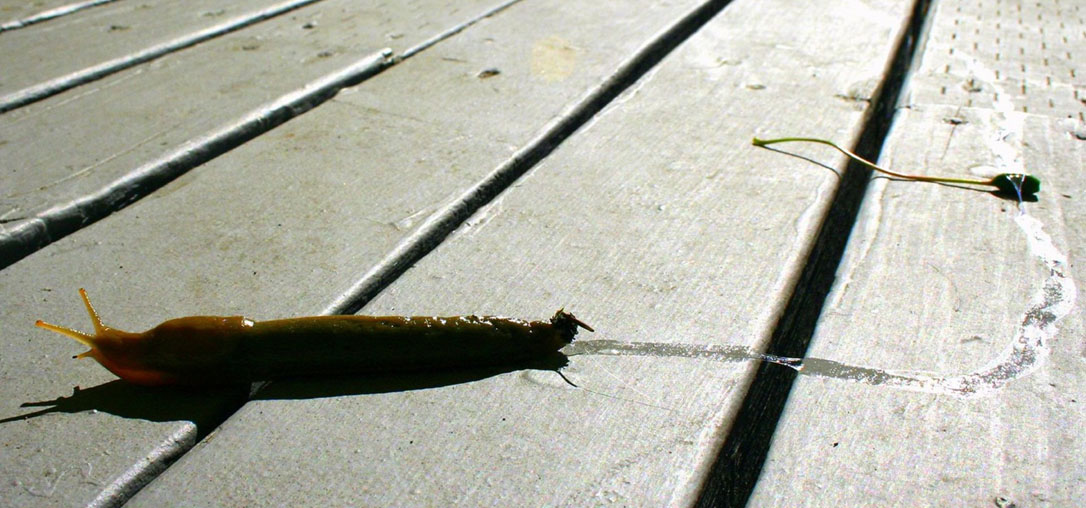 - Trails that lead to slugs hiding in soil or wet plant litter